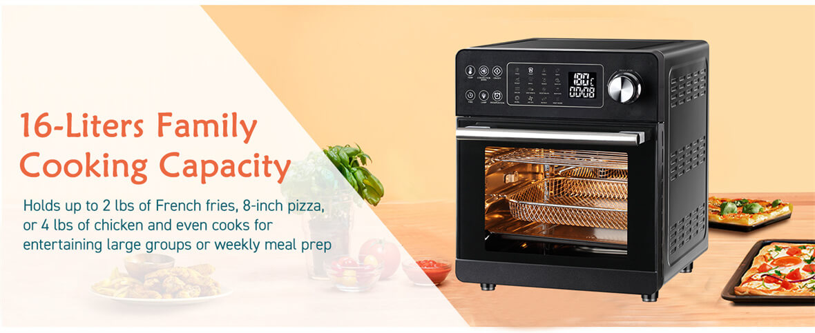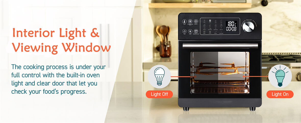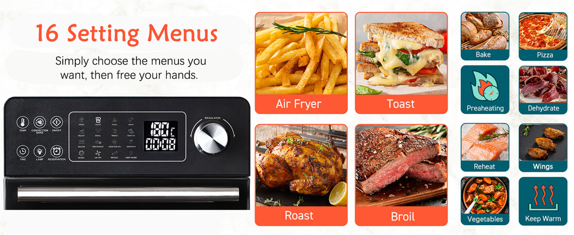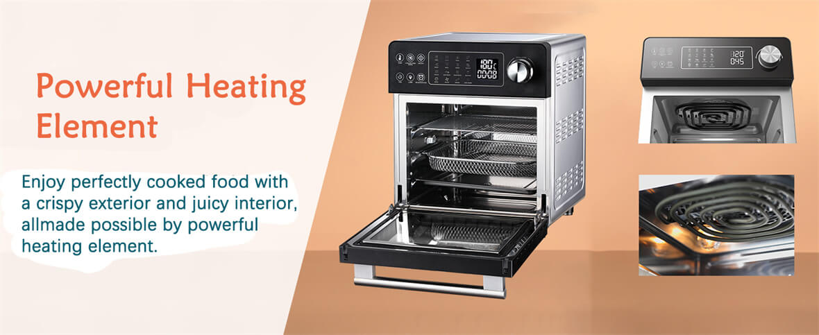 Удобная прямая ручка: конструкция прямой ручки обеспечивает простоту использования и облегчает доступ.Благодаря удобной ручке он упрощает процесс приготовления, позволяя легко маневрировать духовкой-аэрофритюрницей, обеспечивая при этом безопасность и удобство.