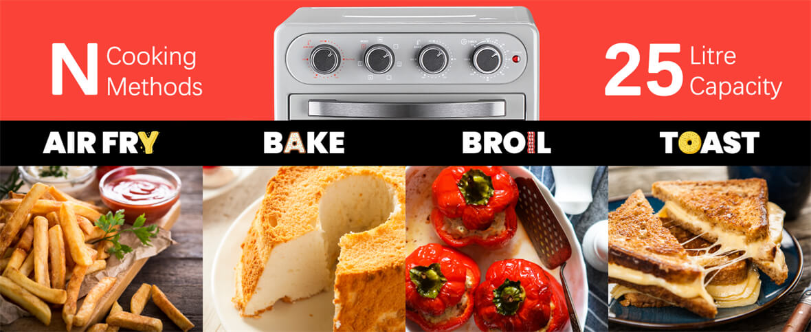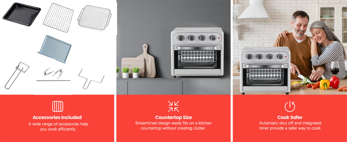 3. Универсальные режимы приготовления: Выбирайте один из семи режимов приготовления в этой духовке, включая уникальный вариант запекания для самых разных кулинарных творений: от сочного жареного цыпленка до хрустящего картофеля фри и аппетитных десертов.