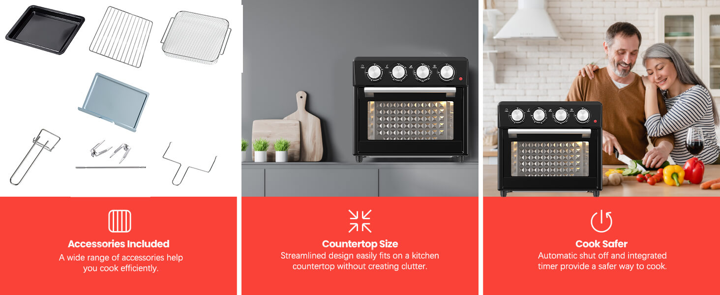 1. Многофункциональный дизайн: Духовка с аэрофритюрницей объединяет в себе несколько функций, включая духовку, фритюрницу и тостер, для удовлетворения различных требований к приготовлению пищи, что позволяет вам легко готовить разнообразные вкусные блюда.