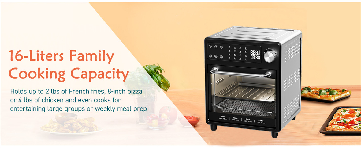 В этом случае электрическую духовку-фритюрницу объемом 16 л можно использовать для приготовления вкусного и хрустящего картофеля фри.Пользователь может просто разогреть духовку до желаемой температуры, а затем положить свеженарезанный картофель фри в корзину фритюрницы.Используя высокотемпературную циркуляцию горячего воздуха, фритюрница извлекает натуральные масла из картофеля, в результате чего картофель фри становится хрустящим без необходимости использования дополнительного масла.Пользователь может регулировать температуру и время приготовления по своему усмотрению, каждый раз гарантируя идеально приготовленный картофель фри.Этот сценарий применения демонстрирует способность духовки готовить жареную пищу с более полезным для здоровья вкусом, обеспечивая хрустящую внешнюю текстуру, сохраняя при этом нежную и ароматную внутреннюю часть.