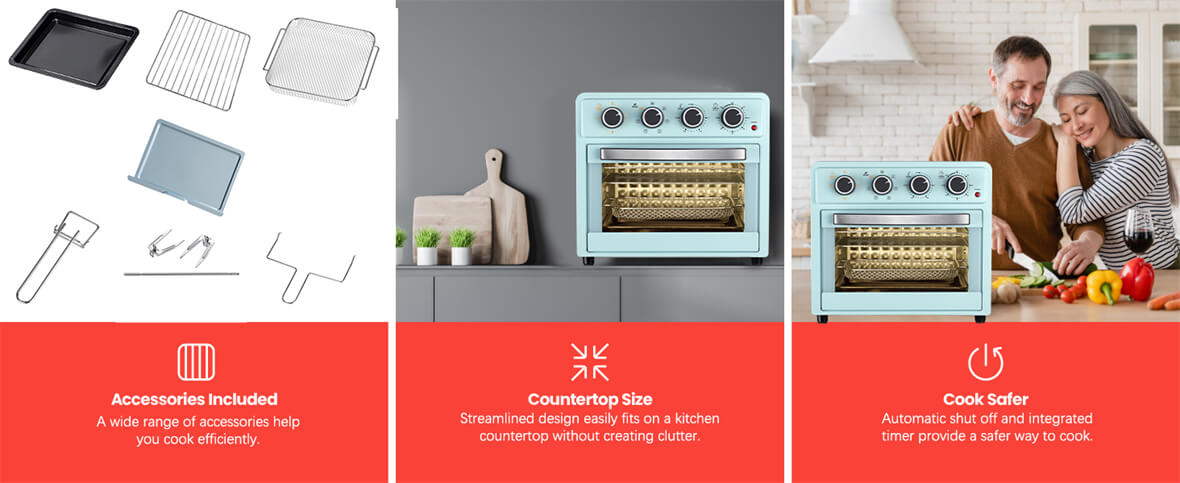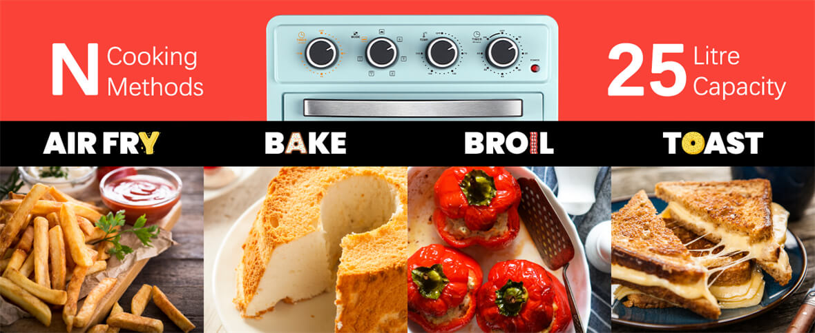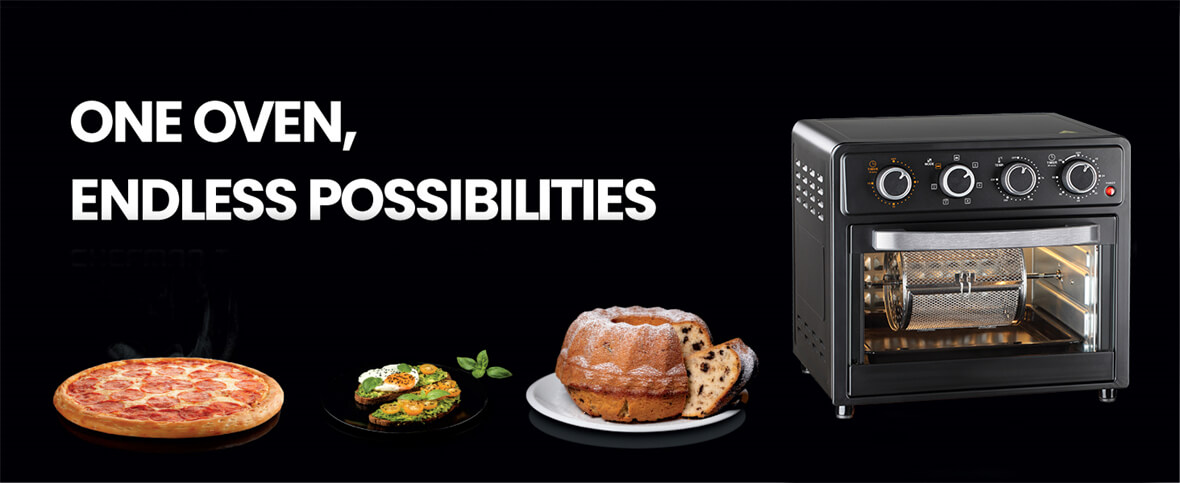 1. Точный контроль приготовления: Четыре поворотные ручки обеспечивают точный контроль скорости вентилятора, температуры и времени приготовления, позволяя каждый раз достигать идеальных результатов.