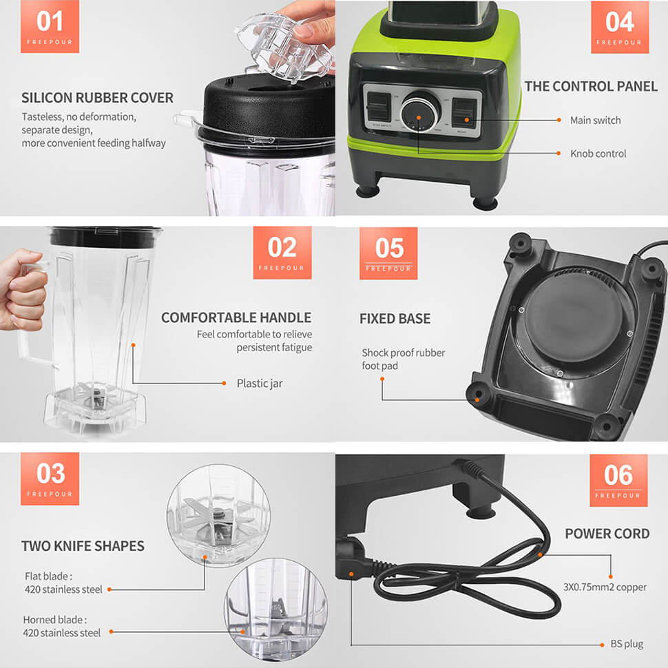 Наш блендер для фруктов с золотой медалью станет вашим верным помощником.Благодаря 9 скоростям вы сможете быстро измельчать фрукты и готовить вкусные соки, экономя драгоценное время.Пластиковый кувшин объемом 2 литра достаточно велик, чтобы приготовить несколько порций одновременно, поэтому вы можете наслаждаться свежим соком в любое время в течение дня.Кроме того, наши блендеры предназначены не только для фруктов: они позволяют приготовить густые молочные коктейли, смузи и многое другое.Этот блендер станет вашей правой рукой в жизни, способной удовлетворить ваши разнообразные потребности в напитках.
