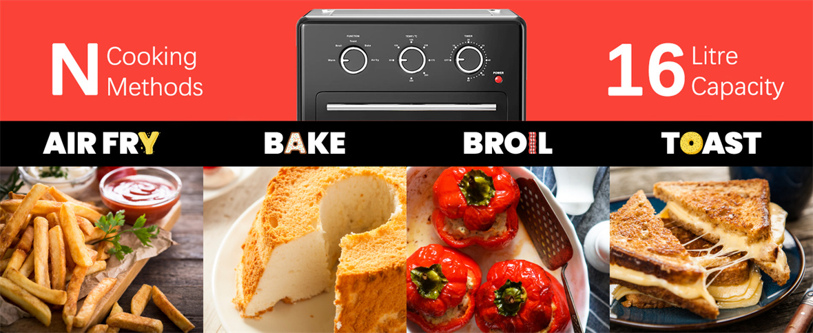 1. Универсальность: Духовка для фритюрницы с одинарным стеклом предлагает пять режимов приготовления, включая «Подогрев», «Гриль», «Выпечка», «Жарка» и «Жарка на воздухе».Он подходит для широкого спектра стилей приготовления: от нежного разогрева до хрустящей жарки на воздухе, позволяя легко и идеально готовить различные блюда.